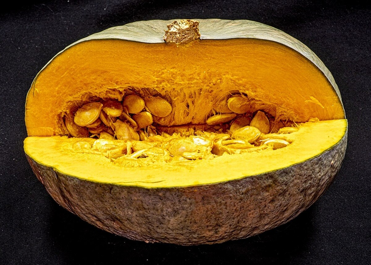 अब कद्दू को काटने के बाद बीजों को निकाल कर एक कटोरी में रख लें। कद्दू को पतले-पतले स्लाइस में काट दें।